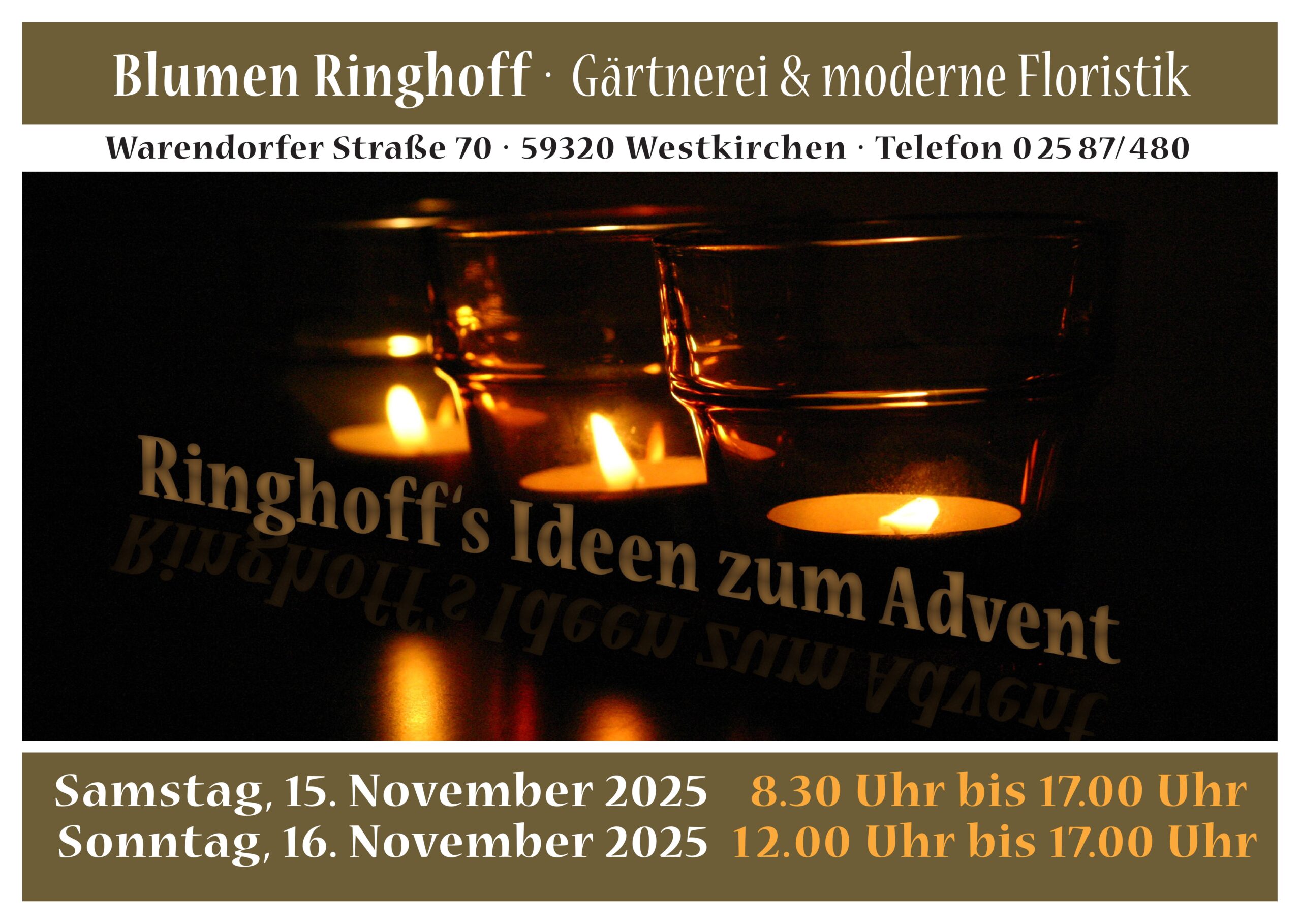Gerne laden wir Sie auch in diesem Jahr wieder ein, um Ihnen in gemütlicher Atmosphäre die neuesten Trends zur Adventszeit zu präsentieren.